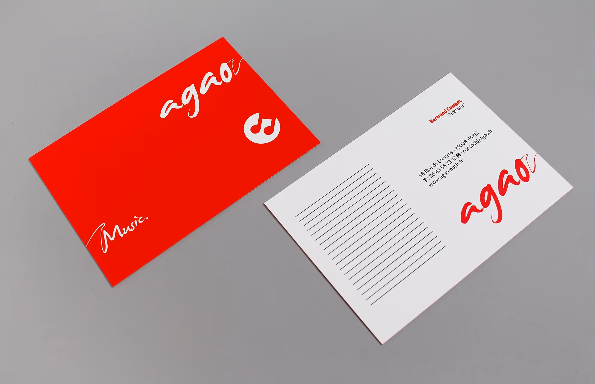 Agao Music est une entreprise Normande spécialisée dans la sonorisation d’espaces médicaux comme les salles d’attente, les pharmacie, les cabinets de médecine et kinésithérapeutes. Il a été prouvé que la diffusion de playlists musicales adaptées dans des espaces médicaux pouvait aider les patients à se détendre et à améliorer les échanges avec les praticiens. Conception d’une identité visuelle minimaliste et colorée ainsi que les déclinaisons sur différents supports imprimés.